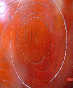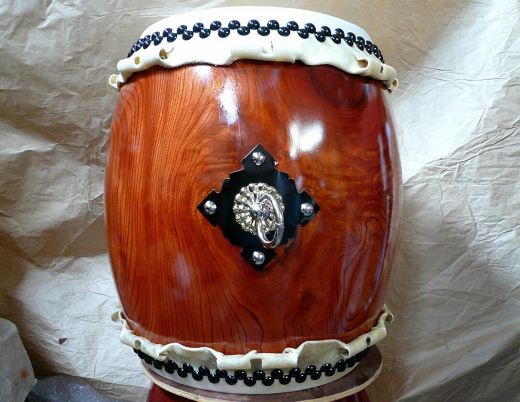 基本的には刳り貫き胴太鼓と変わりはないのですが胴の節キズ(荒胴として刳り貫いた時点で節によって元々あるキズ)や製造過程・乾燥段階で発生した割れやキズを補修した胴を使用しますので比較的安価にて仕上げることができます。